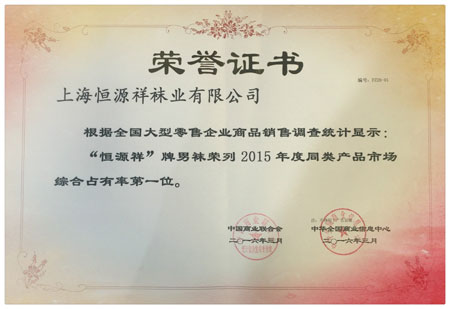 近日,由中国商业联合会、中华全国商业信息中心联合举办的第二十四届中国市场商品销售结果统计新闻发布会暨中国消费市场发展年会上,“恒源祥”牌男袜荣列2015年度同类产品市场综合占有率第一位!