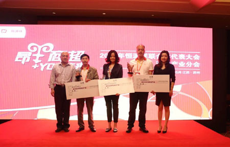 结合恒源祥商超产业去年销售情况,为徐州市织天下针织品有限公司、杭州观澜服饰有限公司及泰州华新针织有限公司颁发了2015年度优秀经销商颁奖。恒源祥商超产业2015年度市场开拓奖由无锡市百势纺织品有限公司、杭州聚果电子商务有限公司、天津世纪昊阳服饰有限公司、杭州聚果电子商务有限公司和上海源庸服饰有限公司获得。