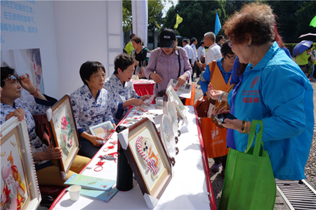 本次的编织队由恒源祥编织课程老师杨维珍、编织大师唐修凤,以及黄浦区社区编织班的优秀学员们组成,她们不仅在舞台上呈现了精美的编织作品和精巧的编织技艺,还充分展现了合作、和谐的大会宗旨,以及海派女红的独有气质,让人耳目一新的同时,也让人看到了海派绒线编织富有活力的一面。