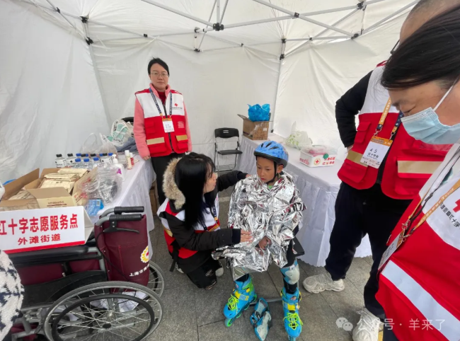 考虑到露天志愿服务点环境嘈杂,志愿服务队在赛事安保人员协助下,将小选手转送至附近的贵宾休息区。期间来自恒源祥集团的红十字志愿者蒋喆漪全程陪伴,通过温暖互动缓解孩子的紧张情绪,并时刻留意观察孩子的身体情况。