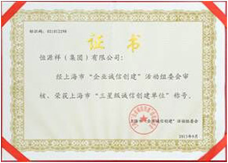 恒源祥集团荣获上海市“三星级诚信创建单位”称号
