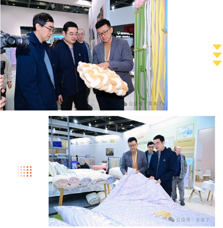 恒源祥集团董事长总经理办公室主任兼质量技术中心总监何爱芳、总经理助理兼全渠道消费者体验中心总监葛明、家纺产业董事长强建春、家纺产业总经理孙蕴聪、家纺产业副总经理孙策、服饰·绒线产业总经理黄珏仁、服饰产业副总经理兼绒线产业常务副总经理罗朕心、服饰产业副总经理孙士元、彩羊产业总经理奚锡、儿童产业总经理吴洲鹏、羊绒产业顾问胡瑞芳、恒源祥家纺一厂副总经理郁敏等领导参与此次观展活动。