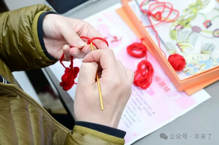 除了丝巾系法教学,活动还安排了“一朵美丽的小红花”编结体验环节。这一环节将恒源祥传承的海派绒线编结非遗技艺融入其中,让老师们亲身体验传统手工艺的魅力。老师们在一针一线的编织中,感受到了非遗文化的博大精深,也体会到了手工制作的乐趣和成就感。