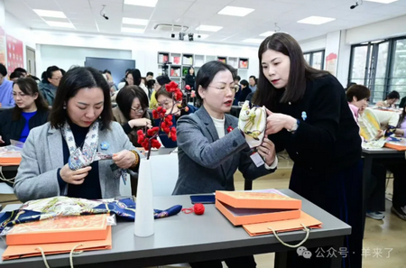 在“三八”女神节来临之际,一场别开生面的活动在交大附属黄浦实验中学温暖上演。3月7日,恒源祥服饰产业与传承的非遗技艺走进校园,为该校 80 多位教师带来了一场充满文化与时尚气息的节日盛宴。