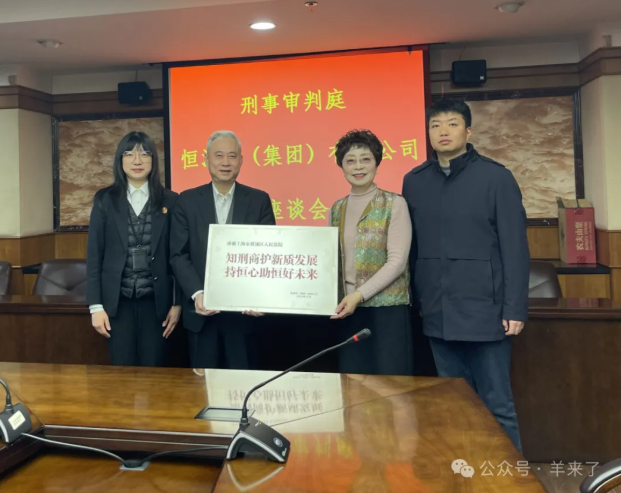 黄浦区人民法院审结假冒“恒源祥”系列案件,不仅切实保障了恒源祥品牌的知识产权,同时对潜在的造假者形成震慑,优化了相关营商环境,提振了市场信心。为表示对黄浦区人民法院的感谢,何爱芳代表恒源祥集团向法院方赠送了“知刑商护新质发展 持恒心助恒好未来”致谢铜牌。