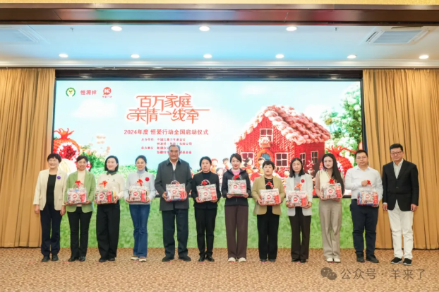 在2024年度“恒爱行动”全国启动仪式上,陈忠伟董事长为爱心妈妈发放爱心毛线