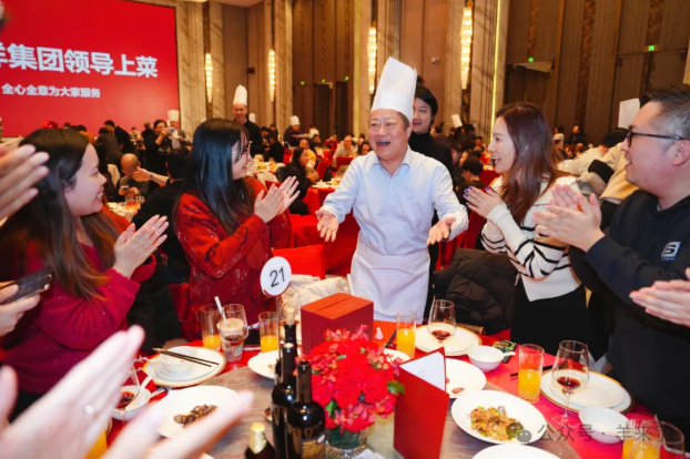 晚宴上,集团领导亲自为全体员工端上第一道菜,用一条年年有“鱼”,祝福大家工作游刃有“鱼”、生活如“鱼”得水、薪水绰绰有“鱼”,让晚会充满了家的温馨与欢乐。