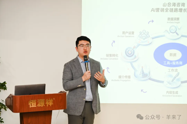山合海创始合伙人郑秋实以《AI营销全链路图谱速览与时尚行业AI营销最佳实践》为题,系统介绍了AI在数据洞察、内容生成、用户运营等环节的应用。他强调,通讯员应主动学习使用AI,将其作为创意“燃料”与效率“杠杆”,构建品牌专属知识库,实现“人机协同”,成为面向消费者的“超级个体”。