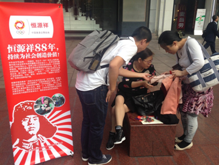 10月20日,恒源祥集团党委第三支部志愿者在南京东路世纪广场开展学雷锋为民服务活动,免费为市民修补毛衫,以及羊毛护理知识的咨询。恒源祥作为上海市以及黄浦区的文明单位之一,始终积极履行社会责任,认真贯彻落实全国精神文明建设工作,积极参与打造黄浦区百家文明单位参与社会服务特色品牌。(集团党委)