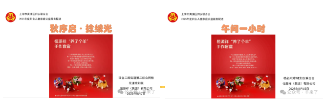 2025年8月,恒源祥集团妇联携非遗团队分别为瑞金二路街道第二综合网格花漾汇妇联和外滩街道德必外滩WE妇联开展了海派非遗手作体验活动。
