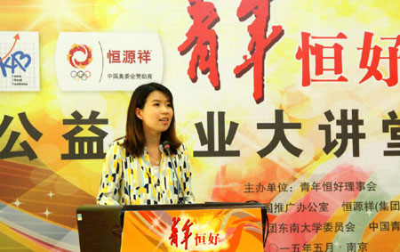 5月21日,由青年恒好理事会主办,KAB全国推广办公室、恒源祥(集团)有限公司和共青团东南大学委员会共同承办的青年恒好公益创业大讲堂在南京东南大学开讲。
