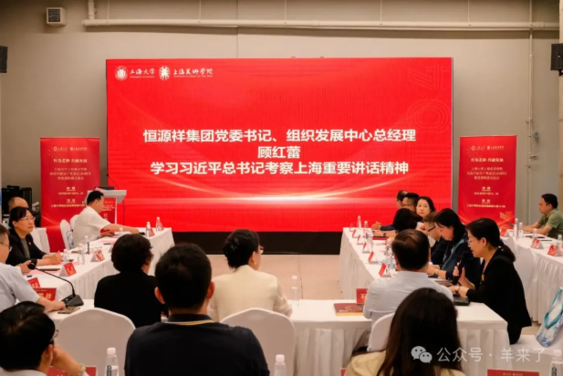 此次与上大美院、新闻传播学院的交流活动,是恒源祥集团党委“七一”主题党日系列活动之一,旨在以党建联建促新质生产力发展,为品牌百年传播、品牌美学战略及人才培育拓展思路、探索路径。