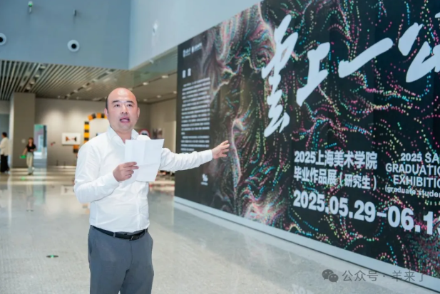 会后,上海美术学院党委副书记、副院长曹俊为与会嘉宾导览了“云上一公里”2025上海美术学院毕业作品展。