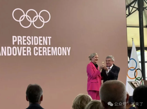 托马斯·巴赫和柯丝蒂·考文垂(左)在主席职位交接仪式上