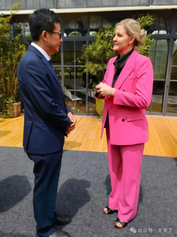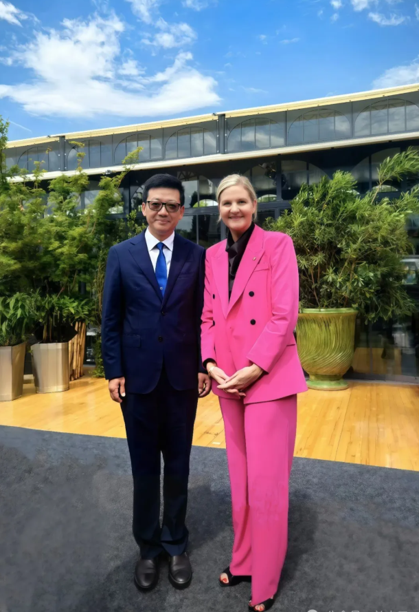 仪式后,陈忠伟董事长向新任主席柯丝蒂·考文垂表示热烈祝贺,双方亲切交谈。