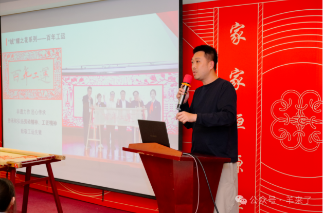 品牌发展中心总监叶桦介绍了运用非遗技艺为载体的海派非遗力作《百年工运》以及“百年工运”的历史知识,诠释了用针和线描绘工运史诗的工匠精神。