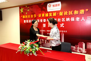 2011年9月20日 集团党委与宝兴社区干部及社区纳保老人“三结对”签约仪式。