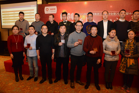 值得一提的是,本次研讨会上还特地举办了“双十一”庆功宴。集团在今年的“双十一”取得了全网销售额过3亿的优异成绩,较去年增长翻了一番。为了表彰作出突出贡献的优秀电商团队,集团邀请了各产业公司的电商代表出席庆功宴,集团总经理陈忠伟致辞,并为优秀代表颁发了纪念金币予以表彰和鼓励,也是希望借此机会对明年的“双十一”寄予新的展望。