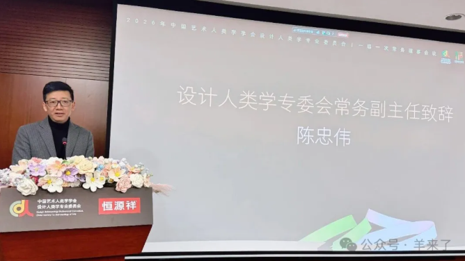 专委会主任委员、中央美术学院建筑学院傅祎教授在致辞中指出,设计人类学专委会作为跨学科交流平台,肩负着构建中国自主知识体系、衔接学术研究与产业实践的使命,需立足中国式现代化语境推动学科发展。专委会常务副主任、恒源祥集团董事长兼总经理陈忠伟出席会议并致辞,强调将依托专委会产学研资源平台,以百年文化传承与创新实践为抓手,推动品牌实现更具文化内涵的高质量发展。