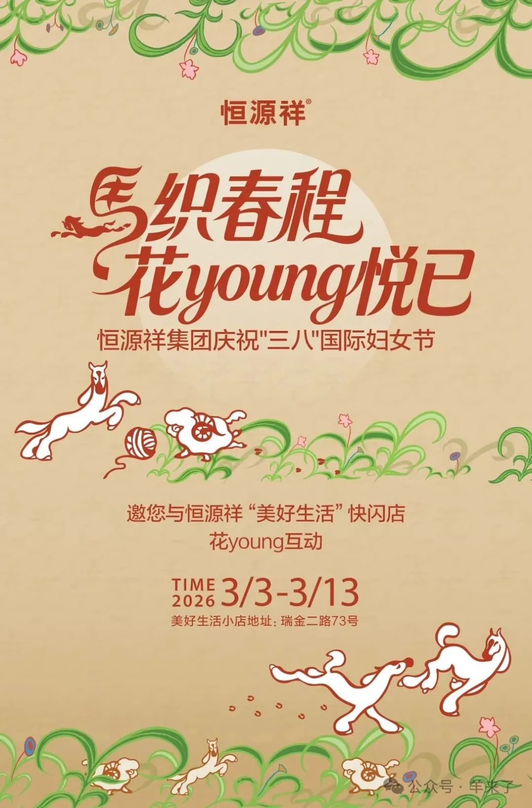 “女神季”期间,集团工会、妇联,组织女员工前往店铺打卡,着恒源祥品牌服装、配饰,拍摄女神季纪念照,定格“羊门女将”与悦己好物的专属交集。此时,恒源祥的女员工们则成为了品牌“美好生活”的体验官。