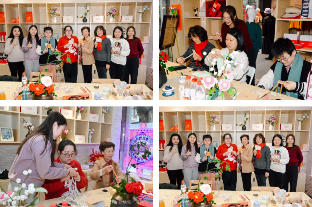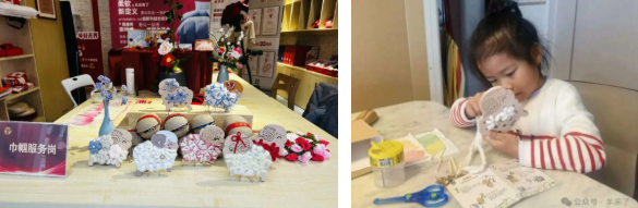 活动期间,瑞金二路街道、外滩街道宝兴居民区等也前来探店,在非遗传承人的指导下,体验“小羊织织乐”创意绒线DIY。