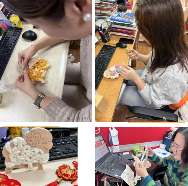 店内陈列的“小羊织织乐”作品均来自恒源祥集团女员工创意手作,或母女同心、或亲子同乐、姐妹同创,一只只色彩各异、造型别致的“小羊”,在她们手中诞生。