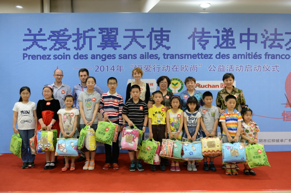 2014年6月27日上午,“关爱折翼天使 传递中法友谊”——“恒爱行动在欧尚”公益活动在上海欧尚长阳店举行。“恒爱行动”是由中国儿童少年基金会和恒源祥(集团)有限公司共同发起的一项旨在关爱和帮助孤残儿童的全国性大型公益活动,由恒源祥集团免费提供毛线及全程支持,由各地妇联寻找爱心父母为孤残儿童编织爱心毛衣。此次活动经上海市杨浦区妇联支持,编织的爱心毛衣将捐赠给上海地区需要救助的困难儿童。